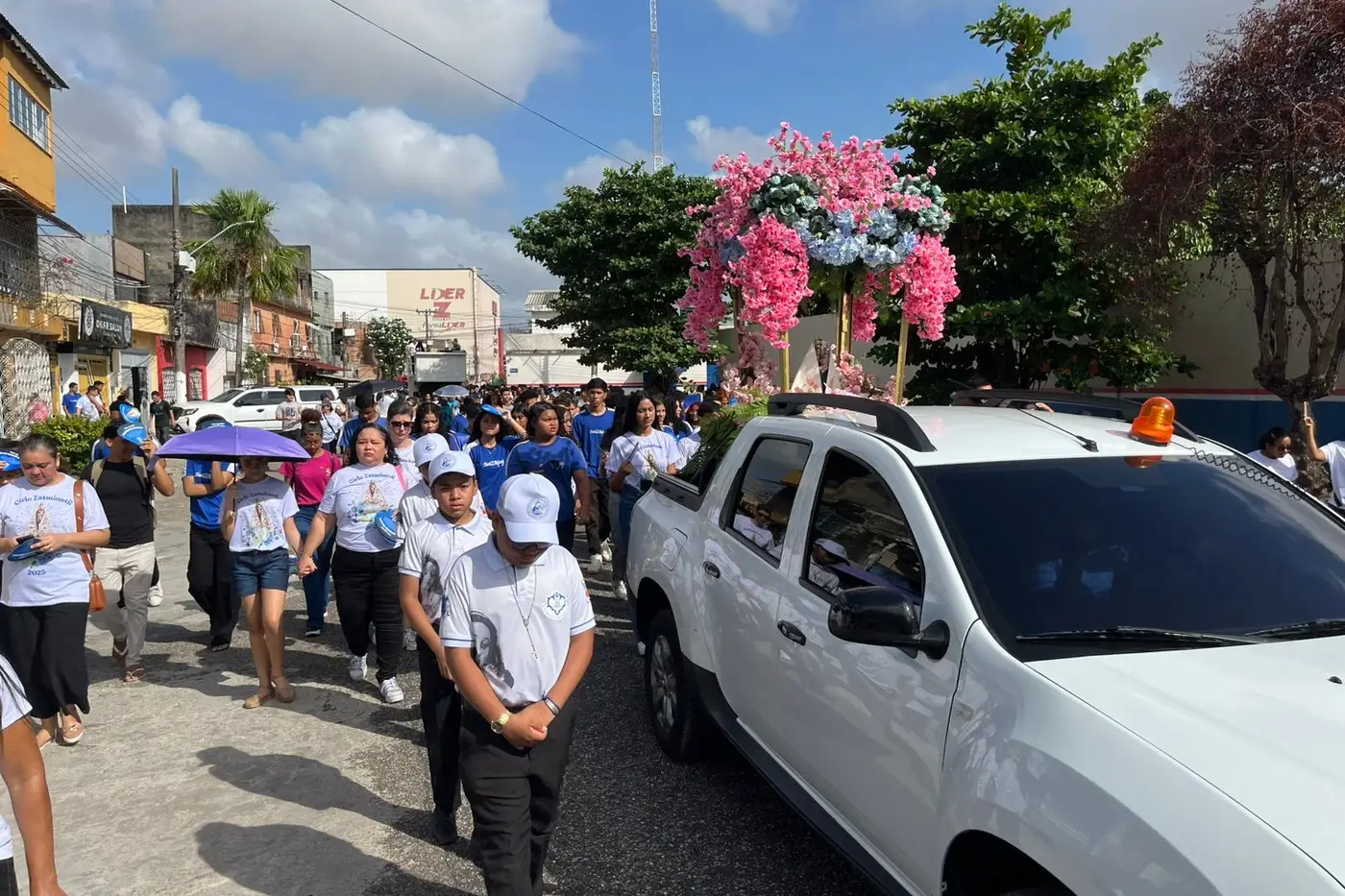 A procissão saiu da Escola Estadual Professor David Salomão Mufarrej, localizada no bairro da Cidade Velha, e seguiu até a Catedral Metropolitana de Belém, onde ocorreu uma celebração conduzida pelo Monsenhor Augustinho Cruz.