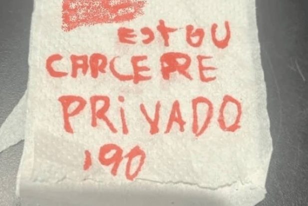 Na última sexta-feira (3), uma mulher de 34 anos foi resgatada de um cárcere privado após pedir ajuda por meio de um bilhete escrito em papel higiênico. O recado foi encontrado no banheiro de um posto de gasolina em Gaspar (SC), e as autoridades foram acionadas pelo funcionário do local que encontrou o pedido de socorro.