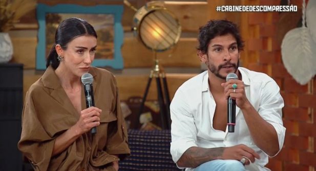 O casal no “Cabine de Descompressão”. (Foto: Reprodução/Record)Por fim, Shia também se disse surpreso com a eliminação da dupla. “Alguma coisa de estranha tem, porque das pessoas que estavam lá, eu não acreditava que nós estávamos na prioridade para sermos eliminados. Eu tinha embates firmes, não de forma desrespeitosa, e estava fazendo alianças muito grandes lá dentro”, concluiu.