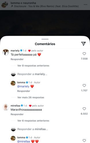 Na segunda-feira, Lomma republicou um vídeo com a legenda: “Você aceitou que não é a amiga favorita de ninguém”, que logo depois foi removido de seu perfil. Mais tarde, Mariely também compartilhou uma reflexão sobre amizade.“Meu traço tóxico é deixar a pessoa me magoar até que ela mesma destrua o que sinto por ela”, publicou.