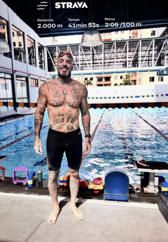 Nas fotos publicadas nas redes sociais, Tico, de 48 anos, aparece sem camisa durante uma aula de natação, exibindo peito, braços e abdômen definidos. O músico explicou que sua relação com os treinos mudou completamente nos últimos anos. “Primeiro procurava uma academia para fazer musculação. Aí comecei a procurar percursos para correr pelas cidades. Hoje busco piscinas pelo país. Em breve, a missão incluirá uma bike. Essa [piscina] de Maceió é uma maravilha! A academia toda, muito obrigado! O Detonautas toca amanhã e os treinos não podem parar! Ah, Maceió, não me seduz assim”, brincou.