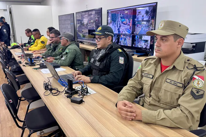 Do Centro Integrado de Comando e Controle Móvel, instalado na Avenida Nazaré, esquina da travessa Quintino Bocaiúva, os agentes de segurança monitoram, em tempo real, o movimento nas ruas por meio das mais de 60 câmeras da Segup distribuídas nas vias que fazem parte do cortejo, a fim de ter a visualização das ações e vias, e ainda, a garantir o contato com os agentes que estão nas vias e a tomada de decisão mais célere em caso de alguma intercorrência.