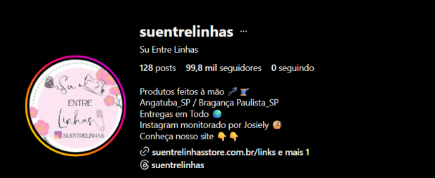O perfil, que já conta com quase 100 mil seguidores, tem sido movimentado com bastante frequência durante a última semana. O catálogo também inclui bolsas e jogos americanos, com entregas disponíveis para todo o país.